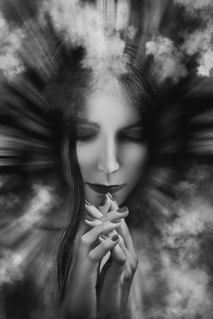 Portrait shot of a pretty young woman, Surreal blurry portrait