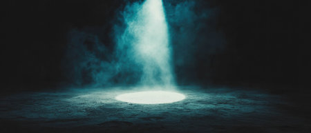 Dramatic spotlight casts a vivid light cone in a darkened space