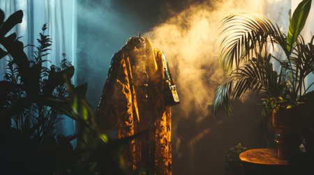 An atmospheric shot of lush indoor plants illuminated by dramatic lighting in a moody setting.