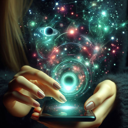 A mystical hand surrounded by glowing tarot cards and cosmic elements, evoking emotions of spirituality and exploration of the unknown