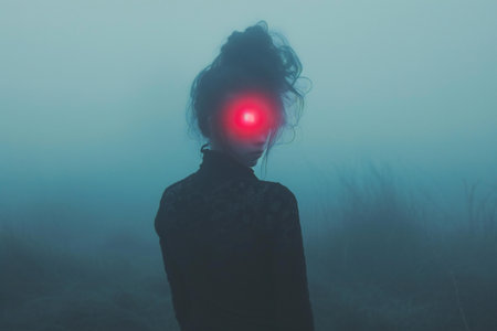 A man's profile emerges from swirling mist, revealing a captivating glow in place of his eyes. This ethereal representation evokes a sense of depth and introspection.