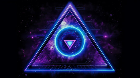 Flower of life. Tree of life. Sacred geometry spiritual new age futuristic illustration with transmutation interlocking circles, triangles and glowing particles