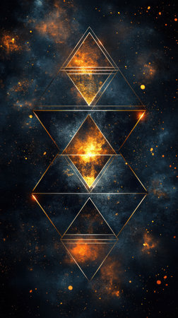 Abstract hipster geometric background with triangles, circles, nebula, stars and galaxy.