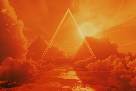 top view of a souvenir pyramid of giza surrounded by neon in golden