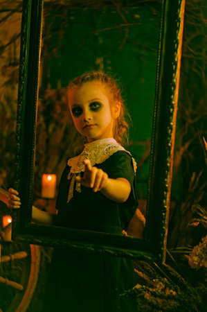 creative portrait of a little girl on Halloween. frame painting. concept. fairy tale