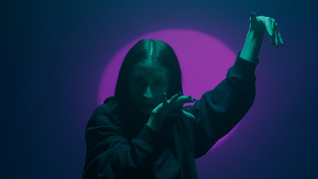 Girls Energetic Hip Hop Dance in Front of a Vivid Colorful Spotlight