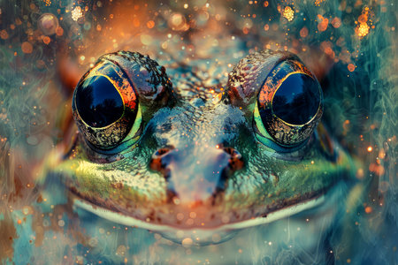 Close up Vivid Portrait of a Frog with Captivating Eyes Surrounded by Glittering Bokeh Effect AI Generative