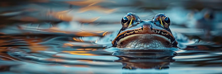 AI Generated. Common Toad Emerges from Water in Natural Habitat