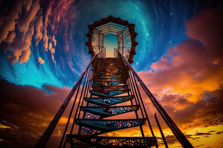 Spectacular carnival glass stairway into the heavens vibrant. Generative AI AIG15.