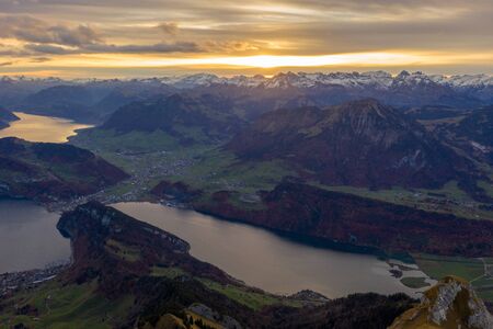 Beautiful panoramic view on Lake Lucerne from Mount Pilatus, Switzerland