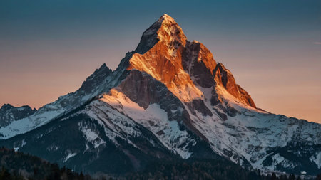 Matterhorn peak at sunset, Zermatt, Switzerland.
