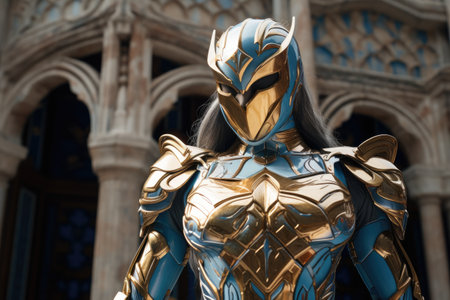 This striking image portrays a black man embodying the essence of a mystical warrior, adorned in captivating armor. With an aura of power and mystery, he stands tall, ready to defend against unseen forces. The intricately designed armor exudes a sense of strength and protection, while his commanding presence hints at his deep connection to ancient wisdom and spiritual forces.