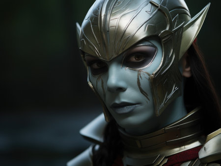 Portrait of a beautiful woman in the image of a fantasy warrior.