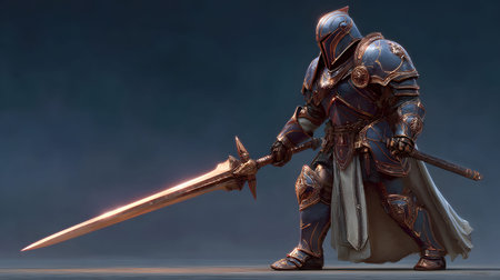 fantasy warrior character with shining armor and glowing sword. Perfect for games, novels, NFTs, and creative digital art.