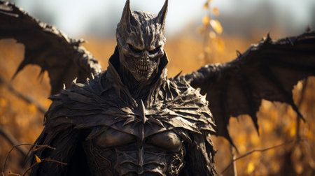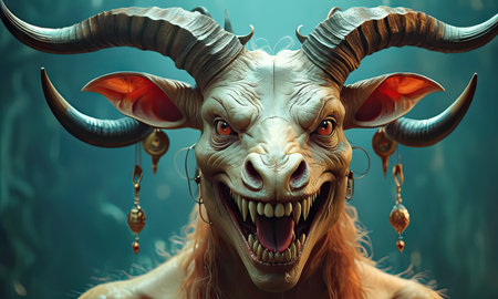 A detailed view of a demon with imposing large horns, showcasing intricate details and a menacing presence.