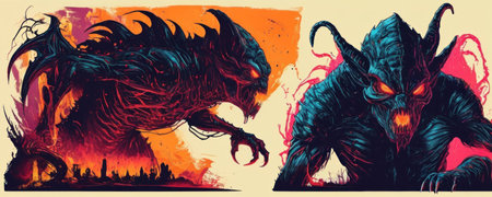 Blurred silhouette of giant monster prepare attack crowd during night. Selective focus.