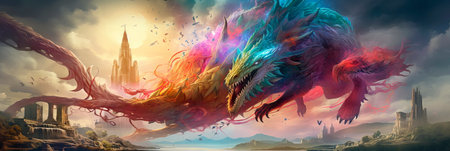 Mystic Symbiosis between fantastical creatures and their environment in dreamy, watercolor realms. Generative AI