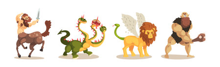 Various Magical Mythical Creatures from Fairytale Vector Set