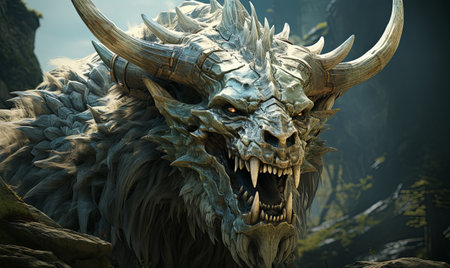 inematic 3d image dragon with burning eyes spines made with generative AI