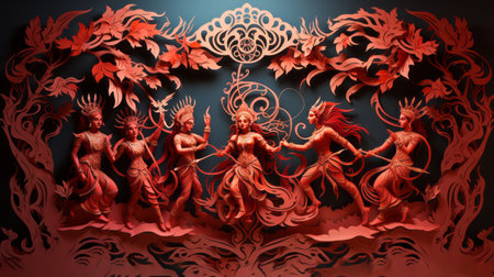 Bangkok, Thailand - March 25, 2018: Figures and sculptures of the Buddhist culture, tradition and religion in Thailand, in the Raja Ratha Hall, part of the collection of the Bangkok National Museum.