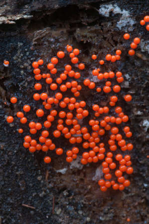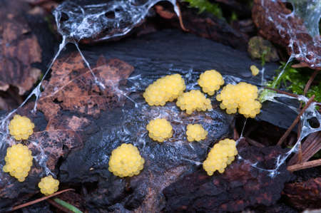 Amazing colorful slime mold Trichia decipiens - slime molds are interesting organisms between mushrooms and animals