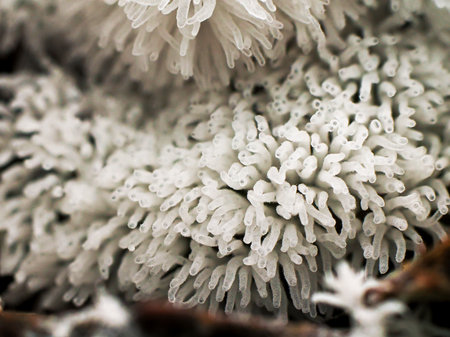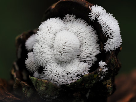 Ceratiomyxa fruticulosa myxomycetes in a moss on a stump