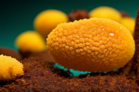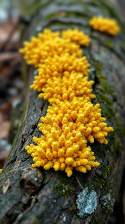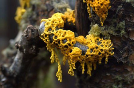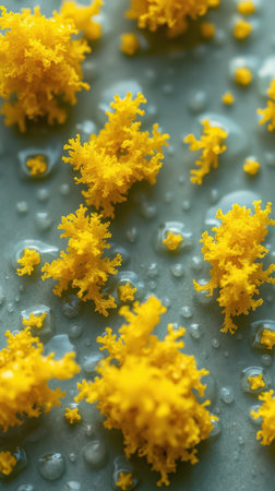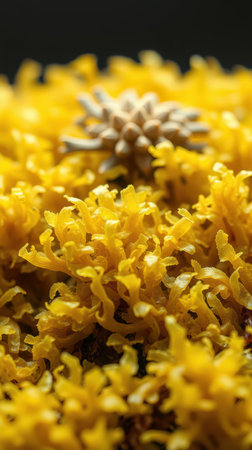 Yellow organic growth on a wet surface showcasing intricate textures and details under natural light