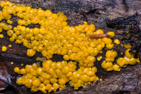Amazing colorful slime mold Trichia decipiens - slime molds are interesting organisms between mushrooms and animals