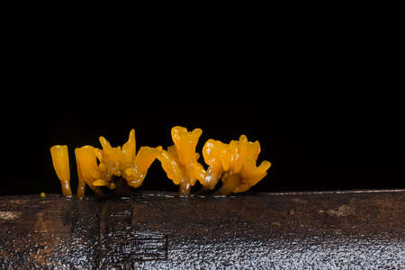 Close up of Orange Mushroom, scientific name Dacryopinax Spathularia in the nature.