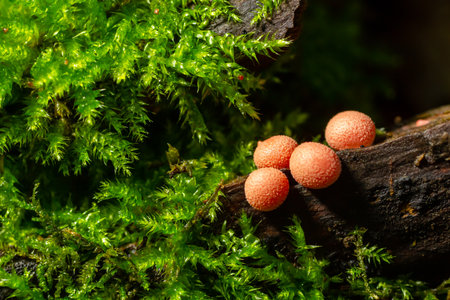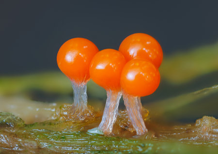 Orange slime mold - Trichia decipiens, its a small protist organism