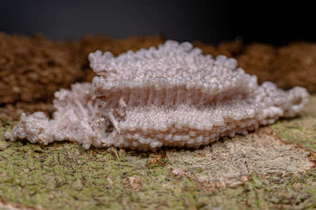 Ceratiomyxa fruticulosa myxomycetes in a moss on a stump