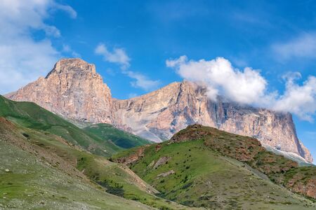 Picturesque mountain landscape with blue sky in Kabardino-Balkaria, Russia