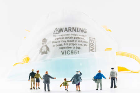 Bangkok, Thailand - March, 24, 2020 : Tiny toys are heading towards the Health Mask to protect against viruses. Kovid-19. Protect yourself from pestilence at Bangkok, Thailand .
