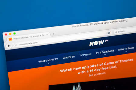 LONDON, UK - AUGUST 7TH 2017: The homepage of the official website for Now TV - a pay TV service provider, on 7th August 2017.
