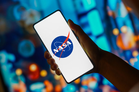 November 3, 2023, Brazil. In this photo illustration, the NASA (National Aeronautics and Space Administration) logo is displayed on a smartphone screen