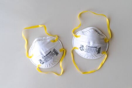 N95 Respirators on white background ,White medical mask isolated. Face mask protection against pollution, virus, flu ,coronavirus ,covid 19. Health care and surgical concept.