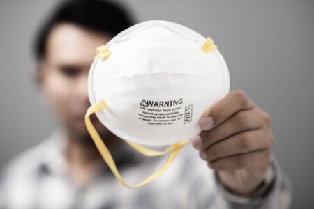 Closeup of N95 respirator. This respirator filter out at least 95% airborne particle including bacteria and virus.