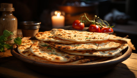 Freshness on a wooden table homemade bread, gourmet meal generated by artificial intelligence