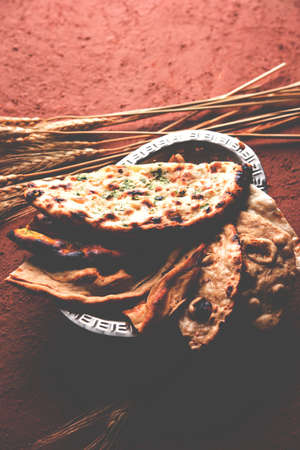 Traditional Indian food garlic naan, Indian freshly baked bread,