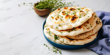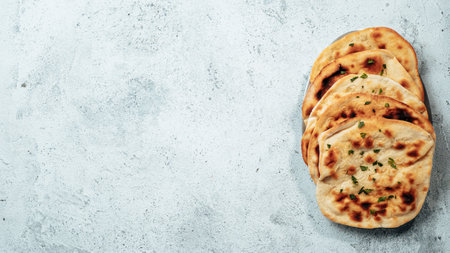 Indian naan bread over light background. Top view, flat lay