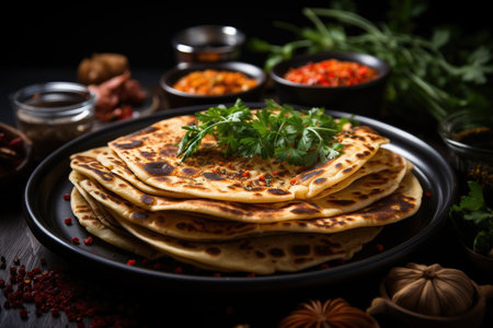 Parantha ghee food. Chapati breakfast. Generate Ai