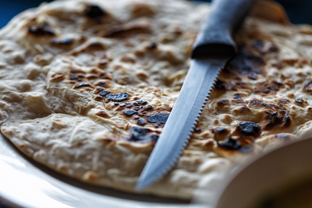 Pita bread with knife in restaurant in Thailand