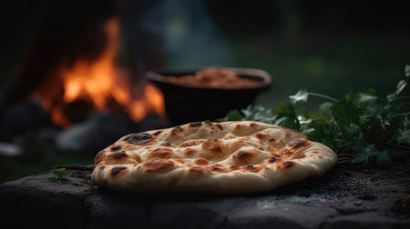 Macro Photo Naan Bread On Stone Rustic Pub