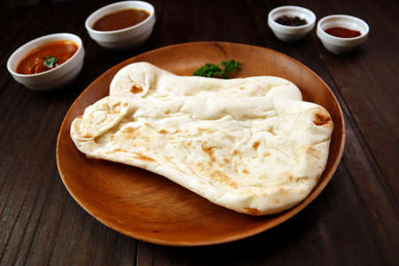 Nan made from wheat to eat with Indian curry on the table