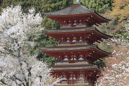 Nara, Japan - April 4, 2019 : Ikoma Hozan-ji temple