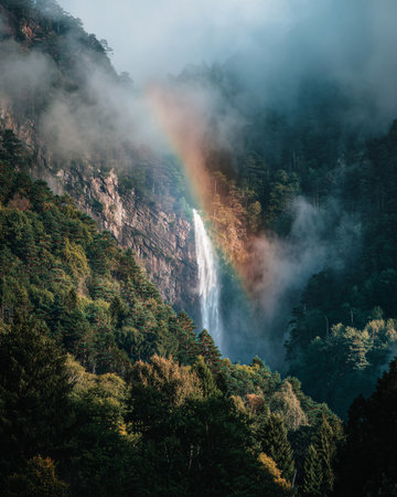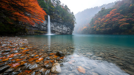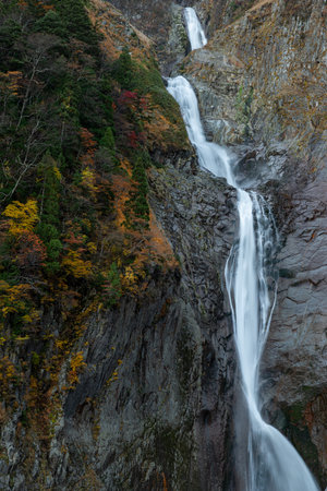Beautiful Shomyo Falls in autumn with autumn leaves
