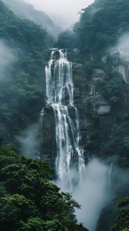 A vertical shot of a beautiful landscape with a waterfall in a forest