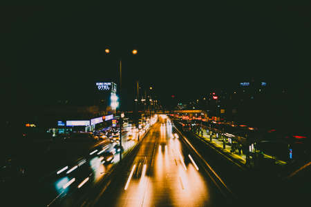 Night road lights. Lights of moving cars at night. long exposure