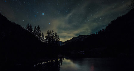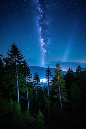 Mountain forest night sky starry sky and Milky Way scene