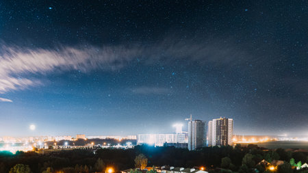 Milky Way in the city at night. Long exposure photo.